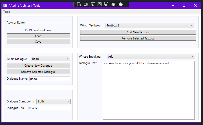 This assignment required me and 4 other students to work together to recreate an old game called 'Afterlife' first within Unity and then solely in DirectX11. The unity project enabled us to layout the foundations of what the game entaled and how we should or shouldn't produce it when making it in DirectX. The main difficult was the DirectX11 creation which forced our group to make every system, including back-end functionality like cameras, UI, and inputs. I was involved with a lot of the back-end systems surrounding the in game population, advisors, stats graph, and more. An important note is the windows software that I had worked on with another member of the group, which is programmed in XAML. It created an interface that allowed for custom dialogue within the game so that 'future game designers' could utilise it and produce content and a quickened pace.